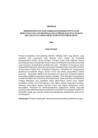 Alyka , Dezanty (2026) PERSEPSI PETANI PADI TERHADAP KINERJA PENYULUH PERTANIAN DALAM MENINGKATKAN PRODUKTIVITAS PADI DI KECAMATAN GADING REJO KABUPATEN PRINGSEWU. FAKULTAS PERTANIAN, UNIVERSITAS LAMPUNG.