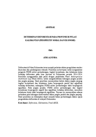 ATRI, ALVINDA (2026) DETERMINAN DEFORESTASI PADA PROVINSI DI PULAU KALIMANTAN (PERSPEKTIF SOSIAL DAN EKONOMI). FAKULTAS EKONOMI DAN BISNIS, UNIVERSITAS LAMPUNG.