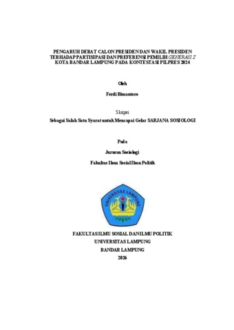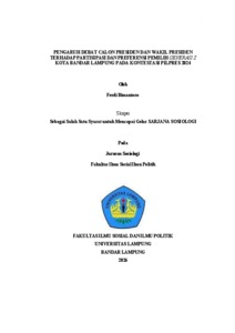 Ferdi, Bimantoro (2025) PENGARUH DEBAT CALON PRESIDEN DAN WAKIL PRESIDEN TERHADAP PARTISIPASI DAN PREFERENSI PEMILIH GENERASI Z KOTA BANDAR LAMPUNG PADA KONTESTASI PILPRES 2024. Fakultas Ilmu Sosial Dan Ilmu Politik, Universitas Lampung.