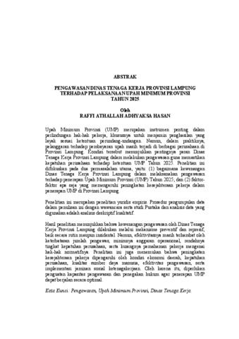 RAFFI ATHALLAH , ADHYAKSA HASAN (2026) PENGAWASAN DINAS TENAGA KERJA PROVINSI LAMPUNG TERHADAP PELAKSANAAN UPAH MINIMUM PROVINSI TAHUN 2025. FAKULTAS HUKUM , UNIVERSITAS LAMPUNG.