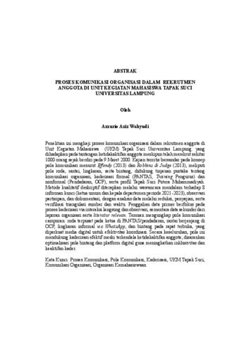 Azzurio, Wahyudi (2026) PROSES KOMUNIKASI ORGANISASI DALAM REKRUTMEN ANGGOTA DI UNIT KEGIATAN MAHASISWA TAPAK SUCI UNIVERSITAS LAMPUNG. FAKULTAS ILMU SOSIAL DAN ILMU POLITIK , UNIVERSITAS LAMPUNG.
