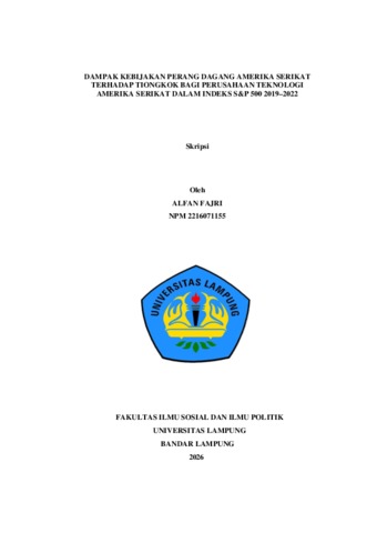 Alfan, Fajri (2026) DAMPAK KEBIJAKAN PERANG DAGANG AMERIKA SERIKAT TERHADAP TIONGKOK BAGI PERUSAHAAN TEKNOLOGI AMERIKA SERIKAT DALAM INDEKS S&P 500 2019–2022. FAKULTAS ILMU SOSIAL DAN ILMU POLITIK, UNIVERSITAS LAMPUNG.