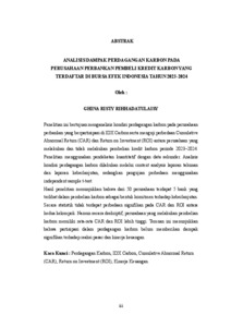 Penelitian ini bertujuan menganalisis kondisi perdagangan karbon pada perusahaan perbankan yang berpartisipasi di IDX Carbon serta menguji perbedaan Cumulative Abnormal Return (CAR) dan Return on Investment (ROI) antara perusahaan yang melakukan dan tidak melakukan pembelian kredit karbon periode 2023–2024. Penelitian menggunakan pendekatan kuantitatif dengan data sekunder. Analisis kondisi perdagangan karbon dilakukan melalui content analysis laporan tahunan dan laporan keberlanjutan, sedangkan pengujian perbedaan menggunakan independent sample t-test. Hasil penelitian menunjukkan bahwa dari 50 perusahaan terdapat 5 bank yang terlibat dalam pembelian karbon sebagai bentuk komitmen terhadap keberlanjutan. Secara statistik tidak terdapat perbedaan signifikan pada CAR dan ROI antara kedua kelompok. Namun secara deskriptif, perusahaan yang melakukan pembelian karbon memiliki rata-rata CAR dan ROI lebih tinggi. Temuan ini menunjukkan bahwa partisipasi dalam perdagangan karbon belum memberikan dampak signifikan terhadap reaksi pasar dan kinerja keuangan. Kaca Kunci : Perdagangan Karbon, IDX Carbon, Cumulative Abnormal Return (CAR), Return on Investment (ROI)), Kinerja Keuangan. This study aims to analyze the carbon trading conditions of banking companies participating in IDX Carbon and to examine the differences in Cumulative Abnormal Return (CAR) and Return on Investment (ROI) between companies that purchased carbon credits and those that did not during the 2023–2024 period. The study uses a quantitative approach with secondary data. The analysis of carbon trading conditions was conducted through content analysis of annual reports and sustainability reports, while the testing of differences used an independent sample t-test. The results of the study show that out of 50 companies, there are 5 banks that are involved in carbon purchasing as a form of commitment to sustainability. Statistically, there was no significant difference in CAR and ROI between the two groups. However, descriptively, companies that purchased carbon had higher average CAR and ROI. These findings indicate that participation in carbon trading has not had a significant impact on market reaction and financial performance. Keywords : Key Words: Carbon Trading, IDX Carbon, Cumulative Abnormal Return (CAR), Return on Investment (ROI), Financial Performance.