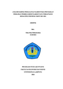 Ghina Risty , Rihhadatulaisy (2026) ANALISIS DAMPAK PERDAGANGAN KARBON PADA PERUSAHAAN PERBANKAN PEMBELI KREDIT KARBON YANG TERDAFTAR DI BURSA EFEK INDONESIA TAHUN 2023-2024. FAKULTAS EKONOMI DAN BISNIS, UNIVERSITAS LAMPUNG.