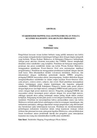 STAKEHOLDER MAPPING DALAM PENGEMBANGAN WISATA KULINER MALIOSEWU DI KABUPATEN PRINGSEWU