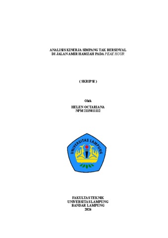 OCTARIANA, HELEN (2026) ANALISIS KINERJA SIMPANG TAK BERSINYAL DI JALAN AMIR HAMZAH PADA PEAK HOUR. FAKULTAS TEKNIK, UNIVERSITAS LAMPUNG.