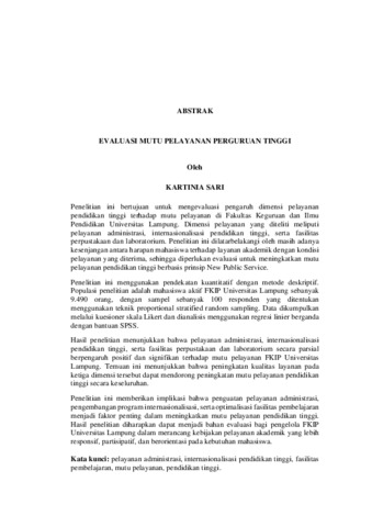 Penelitian ini bertujuan untuk mengevaluasi pengaruh dimensi pelayanan pendidikan tinggi terhadap mutu pelayanan di Fakultas Keguruan dan Ilmu Pendidikan Universitas Lampung. Dimensi pelayanan yang diteliti meliputi pelayanan administrasi, internasionalisasi pendidikan tinggi, serta fasilitas perpustakaan dan laboratorium. Penelitian ini dilatarbelakangi oleh masih adanya kesenjangan antara harapan mahasiswa terhadap layanan akademik dengan kondisi pelayanan yang diterima, sehingga diperlukan evaluasi untuk meningkatkan mutu pelayanan pendidikan tinggi berbasis prinsip New Public Service. Penelitian ini menggunakan pendekatan kuantitatif dengan metode deskriptif. Populasi penelitian adalah mahasiswa aktif FKIP Universitas Lampung sebanyak 9.490 orang, dengan sampel sebanyak 100 responden yang ditentukan menggunakan teknik proportional stratified random sampling. Data dikumpulkan melalui kuesioner skala Likert dan dianalisis menggunakan regresi linier berganda dengan bantuan SPSS. Hasil penelitian menunjukkan bahwa pelayanan administrasi, internasionalisasi pendidikan tinggi, serta fasilitas perpustakaan dan laboratorium secara parsial berpengaruh positif dan signifikan terhadap mutu pelayanan FKIP Universitas Lampung. Temuan ini menunjukkan bahwa peningkatan kualitas layanan pada ketiga dimensi tersebut dapat mendorong peningkatan mutu pelayanan pendidikan tinggi secara keseluruhan. Penelitian ini memberikan implikasi bahwa penguatan pelayanan administrasi, pengembangan program internasionalisasi, serta optimalisasi fasilitas pembelajaran menjadi faktor penting dalam meningkatkan mutu pelayanan pendidikan tinggi. Hasil penelitian diharapkan dapat menjadi bahan evaluasi bagi pengelola FKIP Universitas Lampung dalam merancang kebijakan pelayanan akademik yang lebih responsif, partisipatif, dan berorientasi pada kebutuhan mahasiswa. Kata kunci: pelayanan administrasi, internasionalisasi pendidikan tinggi, fasilitas pembelajaran, mutu pelayanan, pendidikan tinggi.