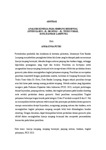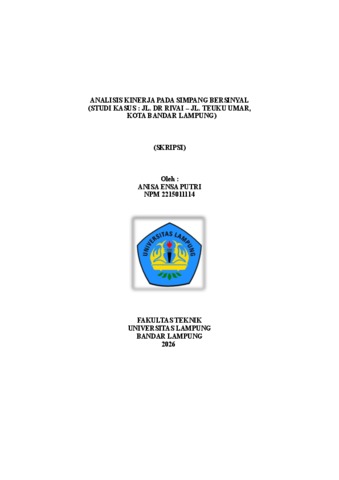 ANISA ENSA , PUTRI (2026) ANALISIS KINERJA PADA SIMPANG BERSINYAL (STUDI KASUS : JL. DR RIVAI – JL. TEUKU UMAR, KOTA BANDAR LAMPUNG). FAKULTAS TEKNIK, UNIVERSITAS LAMPUNG.