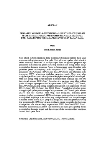 Kadek, Panca Buana (2026) PENGARUH VARIASI LAJU PEMANASAN (HEATING RATES) DALAM PROSES AUSTEMPERING PADA PEMBUATAN KACA TEMPERED DARI KACA BENING TERHADAP KETANGGUHAN BAHAN KACA. FAKULTAS TEKNIK, UNIVERSITAS LAMPUNG.