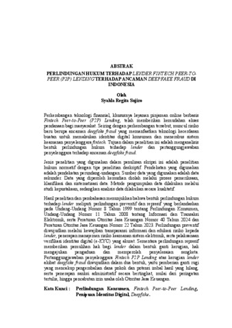 SYAHLA , REGITA SUJIRO (2026) PERLINDUNGAN HUKUM TERHADAP LENDER FINTECH PEER-TOPEER (P2P) LENDING TERHADAP ANCAMAN DEEPFAKE FRAUD DI INDONESIA. FAKULTAS HUKUM , UNIVERSITAS LAMPUNG.