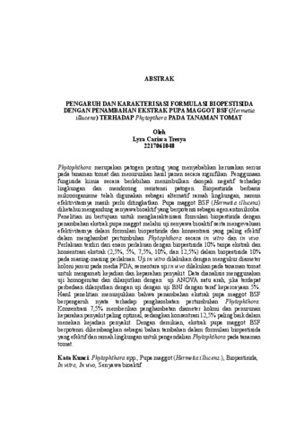 Lyra , Carisca Tresya (2026) PENGARUH DAN KARAKTERISASI FORMULASI BIOPESTISIDA DENGAN PENAMBAHAN EKSTRAK PUPA MAGGOT BSF (Hermetia illucens) TERHADAP Phytopthora PADA TANAMAN TOMAT. FAKULTAS MATEMATIKA DAN ILMU PENGETAHUAN ALAM , UNIVERSITAS LAMPUNG .