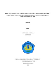AYU , RAHMA FADHILAH (2026) NILAI–NILAI SOSIAL PADA TEKS TRADISI LISAN WARAHAN ANJAK TIYUH NEGERI KATON KABUPATEN PESAWARAN GHIK IMPLIKASINI DILOM PEMBELAJARAN BAHASA LAMPUNG DI SMP. FAKULTAS KEGURUAN DAN ILMU PENDIDIKAN, UNIVERSITAS LAMPUNG.