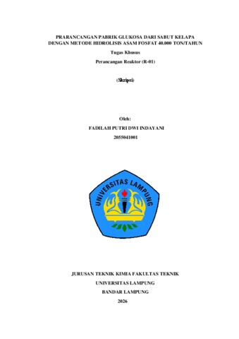 FADILAH , PUTRI DWI INDAYANI (2026) PRARANCANGAN PABRIK GLUKOSA DARI SABUT KELAPA DENGAN METODE HIDROLISIS ASAM FOSFAT 40.000 TON/TAHUN (Tugas Khusus Perancangan Reaktor-01). FAKULTAS TEKNIK , UNIVERSITAS LAMPUNG.
