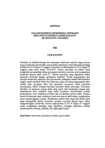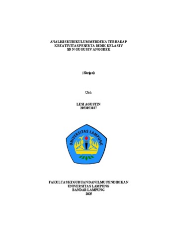 LESI , AGUSTIN (2025) ANALISIS KURIKULUM MERDEKA TERHADAP KREATIVITAS PESERTA DIDIK KELAS IV SD N GUGUS IV ANGGREK. FAKULTAS KEGURUAN DAN ILMU PENDIDIKAN, UNIVERSITAS LAMPUNG.