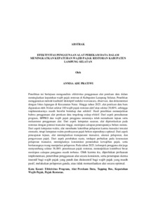 Penelitian ini bertujuan menganalisis efektivitas penggunaan alat perekam data dalam meningkatkan kepatuhan wajib pajak restoran di Kabupaten Lampung Selatan. Penelitian menggunakan metode kualitatif deskriptif melalui wawancara, observasi, dan dokumentasi dengan fokus lapangan di Kecamatan Natar. Hingga tahun 2025, alat perekam data baru digunakan oleh 36 dari sekitar 180 wajib pajak restoran aktif atau sekitar 20,00%, sehingga implementasinya masih bersifat bertahap dan selektif. Hasil penelitian menunjukkan bahwa penggunaan alat perekam data tergolong cukup efektif. Dari aspek pemahaman program, BPPRD dan wajib pajak pengguna umumnya telah memahami tujuan serta mekanisme penggunaan alat. Dari aspek ketepatan sasaran, alat diprioritaskan pada restoran dengan potensi transaksi tinggi, meskipun cakupan penerapannya belum merata. Dari aspek ketepatan waktu, alat membantu ketertiban pelaporan karena transaksi tercatat otomatis, tetapi ketepatan waktu pembayaran pajak belum sepenuhnya optimal. Dari aspek pencapaian tujuan, alat meningkatkan transparansi transaksi, akurasi pelaporan, dan pengawasan pajak. Dari aspek perubahan nyata, terdapat perbaikan pada kesesuaian pelaporan transaksi, meningkatnya konsistensi pemenuhan kewajiban pajak, serta berkurangnya ruang manipulasi pelaporan. Pada tahun 2025, kelompok pengguna alat juga menyumbang sekitar 56,06% penerimaan pajak restoran, menunjukkan kontribusi besar meskipun cakupan pengguna masih terbatas. Oleh karena itu, diperlukan perluasan implementasi, penertiban penggunaan alat secara konsisten, serta penerapan skema insentif bagi wajib pajak yang patuh dan disinsentif bagi wajib pajak yang masih pasif, melakukan pelaporan ganda, atau tidak memanfaatkan alat secara optimal. Kata Kunci: Efektivitas Program, Alat Perekam Data, Tapping Box, Kepatuhan Wajib Pajak, Pajak Restoran.