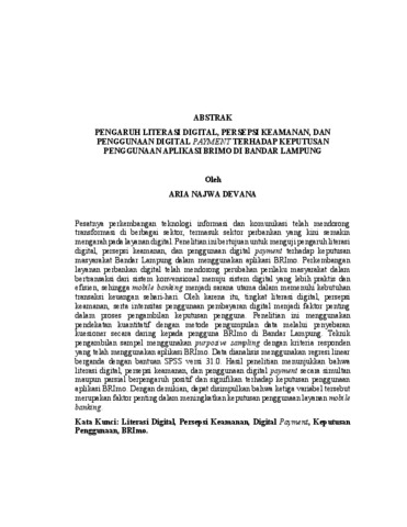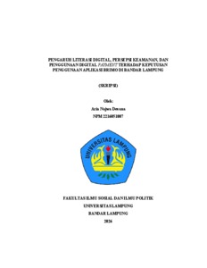 Aria, Najwa Devana (2026) PENGARUH LITERASI DIGITAL, PERSEPSI KEAMANAN, DAN PENGGUNAAN DIGITAL PAYMENT TERHADAP KEPUTUSAN PENGGUNAAN APLIKASI BRIMO DI BANDAR LAMPUNG. FAKULTAS ILMU SOSIAL DAN ILMU POLITIK, UNIVERSITAS LAMPUNG.