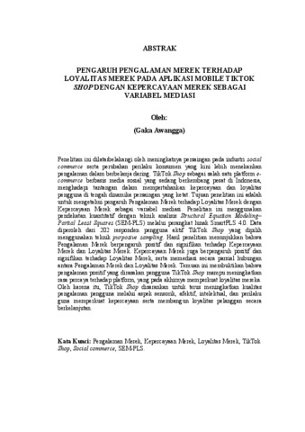 Penelitian ini dilatarbelakangi oleh meningkatnya persaingan pada industri social commerce serta perubahan perilaku konsumen yang kini lebih menekankan pengalaman dalam berbelanja daring. TikTok Shop sebagai salah satu platform e- commerce berbasis media sosial yang sedang berkembang pesat di Indonesia, menghadapi tantangan dalam mempertahankan kepercayaan dan loyalitas pengguna di tengah dinamika persaingan yang ketat. Tujuan penelitian ini adalah untuk mengetahui pengaruh Pengalaman Merek terhadap Loyalitas Merek dengan Kepercayaan Merek sebagai variabel mediasi. Penelitian ini menggunakan pendekatan kuantitatif dengan teknik analisis Structural Equation Modeling– Partial Least Squares (SEM-PLS) melalui perangkat lunak SmartPLS 4.0. Data diperoleh dari 202 responden pengguna aktif TikTok Shop yang dipilih menggunakan teknik purposive sampling. Hasil penelitian menunjukkan bahwa Pengalaman Merek berpengaruh positif dan signifikan terhadap Kepercayaan Merek dan Loyalitas Merek. Kepercayaan Merek juga berpengaruh positif dan signifikan terhadap Loyalitas Merek, serta memediasi secara parsial hubungan antara Pengalaman Merek dan Loyalitas Merek. Temuan ini membuktikan bahwa pengalaman positif yang dirasakan pengguna TikTok Shop mampu meningkatkan rasa percaya terhadap platform, yang pada akhirnya memperkuat loyalitas mereka. Oleh karena itu, TikTok Shop disarankan untuk terus meningkatkan kualitas pengalaman pengguna melalui aspek sensorik, afektif, intelektual, dan perilaku guna memperkuat kepercayaan serta membangun loyalitas pelanggan secara berkelanjutan. Kata Kunci: Pengalaman Merek, Kepercayaan Merek, Loyalitas Merek, TikTok Shop, Social commerce, SEM-PLS.
