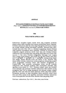 Endometrium merupakan lapisan mukosa uterus yang mengalami perubahan dinamis selama siklus reproduksi dan berperan penting dalam proses implantasi. Ketebalan endometrium pada fase estrus sangat dipengaruhi oleh hormon estrogen dan menjadi indikator penting keberhasilan reproduksi. Beberapa bahan alami, termasuk daun sirih (Piper betle L.), diketahui mengandung senyawa fitokimia yang berpotensi memengaruhi sistem reproduksi. Penelitian ini bertujuan untuk mengetahui pengaruh pemberian ekstrak etanol daun sirih terhadap ketebalan endometrium serta menentukan dosis yang paling efektif pada mencit betina (Mus musculus L.) fase estrus. Penelitian menggunakan Rancangan Acak Lengkap (RAL) dengan empat perlakuan, yaitu kontrol dan tiga dosis ekstrak etanol daun sirih (9 mg/30gBB, 12 mg/30gBB, dan 15 mg/30gBB), masing-masing dengan lima ulangan. Ekstrak diberikan secara oral selama 14 hari. Parameter yang diamati adalah ketebalan endometrium melalui pengukuran histopatologi preparat uterus menggunakan mikroskop cahaya. Data dianalisis menggunakan uji Kruskal–Wallis. Hasil penelitian menunjukkan bahwa rata-rata ketebalan endometrium antar kelompok perlakuan tidak menunjukkan perbedaan yang signifikan secara statistik (p > 0,05). Meskipun terdapat variasi nilai ketebalan secara deskriptif, pola penurunan ketebalan endometrium tidak konsisten seiring peningkatan dosis. Hal ini diduga dipengaruhi oleh dominasi estrogen endogen pada fase estrus serta dosis dan durasi pemberian ekstrak yang belum optimal. Berdasarkan penelitian ini dapat disimpulkan bahwa pemberian ekstrak etanol daun sirih belum mampu secara signifikan menurunkan ketebalan endometrium mencit betina pada fase estrus dan belum diketahui dosis yang paling efektif. Kata kunci: endometrium, Piper betle L., fase estrus, mencit betina ABSTRACT The endometrium is the mucosal lining of the uterus that undergoes dynamic changes during the reproductive cycle and plays an important role in the implantation process. Endometrial thickness during the estrus phase is strongly influenced by estrogen and serves as an important indicator of reproductive success. Several natural materials, including betel leaf (Piper betle L.), are known to contain phytochemical compounds that may affect the reproductive system. This study aimed to determine the effect of ethanol extract of betel leaf on endometrial thickness and to identify the most effective dose in female mice (Mus musculus L.) during the estrus phase. This study used a Completely Randomized Design (CRD) with four treatments, namely a control group and three doses of ethanol extract of betel leaf (9 mg/30g body weight, 12 mg/30g body weight, and 15 mg/30g body weight), each consisting of five replicates. The extract was administered orally for 14 days. The observed parameter was endometrial thickness measured through histopathological examination of uterine preparations using a light microscope. Data were analyzed using the Kruskal–Wallis test. The results showed that the average endometrial thickness among treatment groups did not show a statistically significant difference (p > 0.05). Although there were descriptive variations in thickness values, the pattern of endometrial thinning was not consistent with increasing doses. This may be influenced by the dominance of endogenous estrogen during the estrus phase, as well as the dose and duration of extract administration that may not have been optimal. Based on this study, it can be concluded that the administration of ethanol extract of betel leaf was not able to significantly reduce endometrial thickness in female mice during the estrus phase, and the most effective dose has not yet been determined. Keywords: endometrium, Piper betle L., estrus phase, female mice.