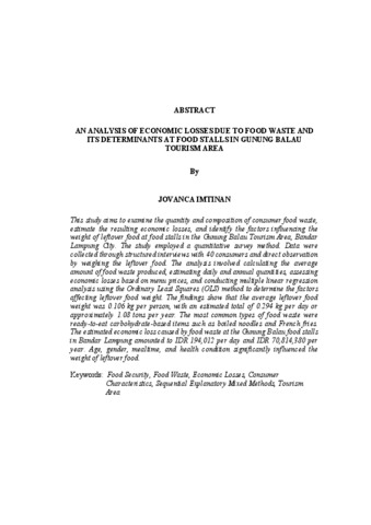 Jovanca , Imtinan (2026) ANALISIS KERUGIAN EKONOMI AKIBAT FOOD WASTE DAN DETERMINANNYA PADA KEDAI DI WISATA GUNUNG BALAU BANDAR LAMPUNG. FAKULTAS PERTANIAN, UNIVERSITAS LAMPUNG.
