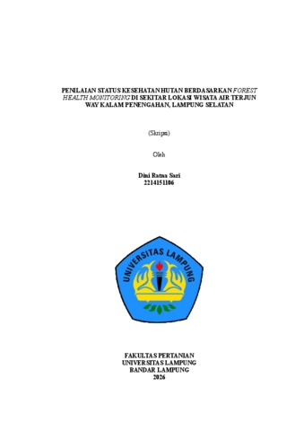 Dini, Ratna Sari (2026) PENILAIAN STATUS KESEHATAN HUTAN BERDASARKAN FOREST HEALTH MONITORING DI SEKITAR LOKASI WISATA AIR TERJUN WAY KALAM PENENGAHAN, LAMPUNG SELATAN. FAKULTAS PRTANIAN, UNIVERSITAS LAMPUNG.