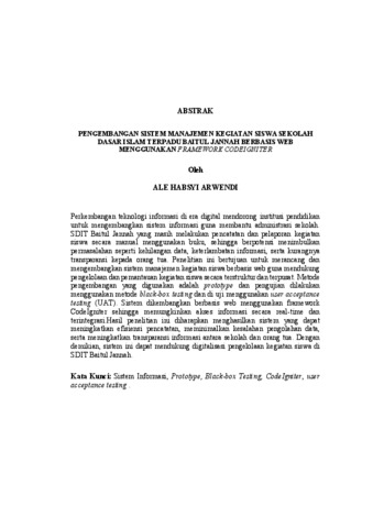 PENGEMBANGAN SISTEM MANAJEMEN KEGIATAN SISWA SEKOLAH DASAR ISLAM TERPADU BAITUL JANNAH BERBASIS WEB MENGGUNAKAN FRAMEWORK CODEIGNITER