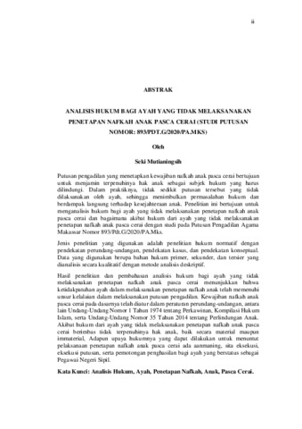 SEKI, MUTIANINGSIH (2026) ANALISIS HUKUM BAGI AYAH YANG TIDAK MELAKSANAKAN PENETAPAN NAFKAH ANAK PASCA CERAI (STUDI PUTUSAN NOMOR: 893/PDT.G/2020/PA.MKS). FAKULTAS HUKUM, UNIVERSITAS LAMPUNG.