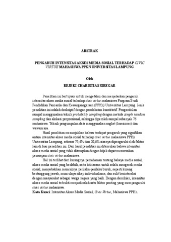 REJEKI CHARISTIAS , SIREGAR (2026) PENGARUH INTENSITAS AKSES MEDIA SOSIAL TERHADAP CIVIC VIRTUE MAHASISWA PPKN UNIVERSITAS LAMPUNG. FAKULTAS KEGURUAN DAN ILMU PENDIDIKAN , UNIVERSITAS LAMPUNG.