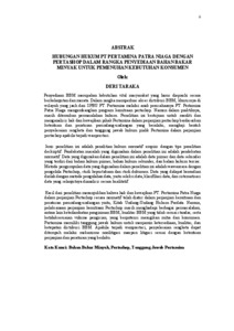 HUBUNGAN HUKUM PT PERTAMINA PATRA NIAGA DENGAN PERTASHOP DALAM RANGKA PENYEDIAAN BAHAN BAKAR MINYAK UNTUK PEMENUHAN KEBUTUHAN KONSUMEN