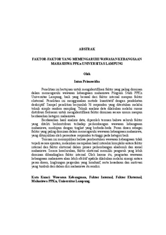 Intan , Primawitha (2026) FAKTOR-FAKTOR YANG MEMENGARUHI WAWASAN KEBANGSAAN MAHASISWA PPKn UNIVERSITAS LAMPUNG. FAKULTAS KEGURUAN DAN ILMU PENDIDIKAN , UNIVERSITAS LAMPUNG.