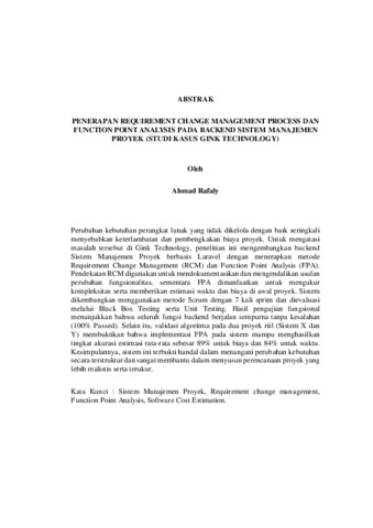 Perubahan kebutuhan perangkat lunak yang tidak dikelola dengan baik seringkali menyebabkan keterlambatan dan pembengkakan biaya proyek. Untuk mengatasi masalah tersebut di Gink Technology, penelitian ini mengembangkan backend Sistem Manajemen Proyek berbasis Laravel dengan menerapkan metode Requirement Change Management (RCM) dan Function Point Analysis (FPA). Pendekatan RCM digunakan untuk mendokumentasikan dan mengendalikan usulan perubahan fungsionalitas, sementara FPA dimanfaatkan untuk mengukur kompleksitas serta memberikan estimasi waktu dan biaya di awal proyek. Sistem dikembangkan menggunakan metode Scrum dengan 7 kali sprint dan dievaluasi melalui Black Box Testing serta Unit Testing. Hasil pengujian fungsional menunjukkan bahwa seluruh fungsi backend berjalan sempurna tanpa kesalahan (100% Passed). Selain itu, validasi algoritma pada dua proyek riil (Sistem X dan Y) membuktikan bahwa implementasi FPA pada sistem mampu menghasilkan tingkat akurasi estimasi rata-rata sebesar 89% untuk biaya dan 84% untuk waktu. Kesimpulannya, sistem ini terbukti handal dalam menangani perubahan kebutuhan secara terstruktur dan sangat membantu dalam menyusun perencanaan proyek yang lebih realistis serta terukur. Kata Kunci : Sistem Manajemen Proyek, Requirement change management, Function Point Analysis, Software Cost Estimation.
