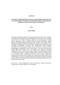 Ahmad, Rafaly (2026) PENERAPAN REQUIREMENT CHANGE MANAGEMENT PROCESS DAN FUNCTION POINT ANALYSIS PADA BACKEND SISTEM MANAJEMEN PROYEK (STUDI KASUS GINK TECHNOLOGY). FAKULTAS TEKNIK, UNIVERSITAS LAMPUNG.
