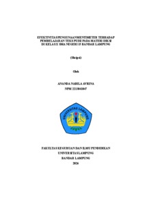 ANANDA NABILA , AVRINA (2026) EFEKTIVITAS PENGUNAAN MENTIMETER TERHADAP PEMBELAJARAN TEKS PUISI PADA MATERI DIKSI DI KELAS X SMA NEGERI 15 BANDAR LAMPUNG. FAKULTAS KEGURUAN DAN ILMU PENDIDIKAN, UNIVERSITAS LAMPUNG.