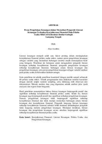 ALYA, AZZAHRA (2026) PERAN PENGELOLAAN KEUANGAN DALAM MEMEDIASI PENGARUH LITERASI KEUANGAN TERHADAP KESEJAHTERAAN FINANSIAL PADA PELAKU USAHA MIKRO DI KELURAHAN SIMBARWARINGIN LAMPUNG TENGAH. FAKULTAS KEGURUAN DAN ILMU PENDIDIKAN, UNIVERSITAS LAMPUNG.