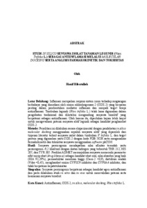 Latar Belakang: Inflamasi merupakan respons sistem imun terhadap rangsangan berbahaya yang dimediasi oleh enzim siklooksigenase-2 (COX-2) yang berperan penting dalam pembentukan mediator inflamasi dan menjadi target terapi antiinflamasi. Tumbuhan legundi (Vitex trifolia L.) telah lama digunakan dalam pengobatan tradisional dan diketahui mengandung senyawa bioaktif yang berpotensi sebagai antiinflamasi. Oleh karena itu, diperlukan kajian lebih lanjut untuk mengevaluasi potensi senyawa aktif legundi sebagai kandidat penghambat COX-2. Metode: Penelitian ini dilakukan secara eksperimental dengan pendekatan in silico molecular docking menggunakan sepuluh senyawa aktif yang diperoleh dari tinjauan literatur terkait senyawa isolat dalam tumbuhan V. trifolia L. dan target protein yang digunakan yaitu COX-2 dengan kode PDB 5KIR serta menganalisis farmakokinetik dan toksisitas senyawa menggunakan software pkCSM. Hasil: Senyawa persicogenin mendapatkan nilai afinitas terendah yaitu persicogenin -9,2 kkal/mol dengan ikatan hidrogen yang terbentuk THR 212, HIS 207, dan TYR 385. Prediksi ADMET menunjukkan senyawa memenuhi parameter sifat mirip obat (drug-likeness) sebagai kandidat obat oral, nilai absorbsi yang baik (HIA 92,29%), permeabilitas membran tinggi (Caco-2 >0,9), distribusi rendah (Vdss <0,45), menghambat enzim CYP2C9 inhibitor dan CYP3A4 inhibitor, dan tidak berpotensi hepatotoksisitas. Simpulan: Senyawa persicogenin berpotensi sebagai kandidat agen antiinflamasi dan perlu dilakukan studi in vitro dan in vivo untuk memvalidasi potensi serta keamanan senyawa tersebut. Kata Kunci: Antiinflamasi, COX-2, in silico, molecular docking, Vitex trifolia L. Background: Inflammation is an immune response to harmful stimuli mediated by cyclooxygenase-2 (COX-2), which plays a crucial role in the formation of inflammatory mediators and serves as a therapeutic target for anti-inflammatory treatment. Vitex trifolia L. (legundi) has long been used in traditional medicine and is known to contain bioactive compounds with potential anti-inflammatory properties. Therefore, further investigation is required to evaluate the potential of active compounds from legundi as candidates for COX-2 inhibition. Methods: This study was conducted experimentally using an in silico molecular docking approach involving ten active compounds obtained from a literature review of isolated compounds from V. trifolia L. The target protein used was COX-2 (PDB ID: 5KIR). Pharmacokinetic and toxicity properties of the compounds were analyzed using the pkCSM software. Results: Persicogenin showed the lowest binding affinity at −9.2 kcal/mol, with hydrogen bond interactions involving residues THR212, HIS207, and TYR385. ADMET predictions indicated that persicogenin met drug-likeness criteria as a potential oral drug candidate, exhibited good intestinal absorption (HIA 92.29%), high membrane permeability (Caco-2 > 0.9), low volume of distribution (Vdss < 0.45), inhibitory effects on CYP2C9 and CYP3A4 enzymes, and no predicted hepatotoxicity. Conclusion: Persicogenin shows potential as a candidate anti-inflammatory agent, and further in vitro and in vivo studies are required to validate its efficacy and safety. Keywords: Anti-inflammatory, COX-2, in silico, molecular docking, Vitex trifolia L.