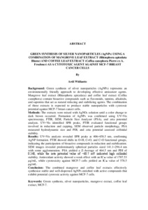 GREEN SYNTHESIS SILVER NANOPARTIKEL (AgNPs) KOMBINASI EKSTRAK DAUN MANGROVE (Rhizophora apiculate Blume) DAN DAUN KOPI (Coffea canephora Pierre ex A. Froehner) SEBAGAI AGEN SITOTOKSIK SEL KANKER PAYUDARA MCF-7