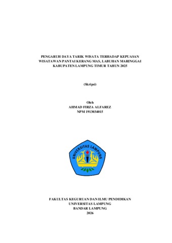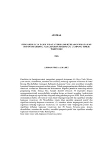 AHMAD , FIRZA ALFAREZ (2026) PENGARUH DAYA TARIK WISATA TERHADAP KEPUASAN WISATAWAN PANTAI KERANG MAS, LABUHAN MARINGGAI KABUPATEN LAMPUNG TIMUR TAHUN 2025. FAKULTAS KEGURUAN DAN ILMU PENDIDIKAN, UNIVERSITAS LAMPUNG.