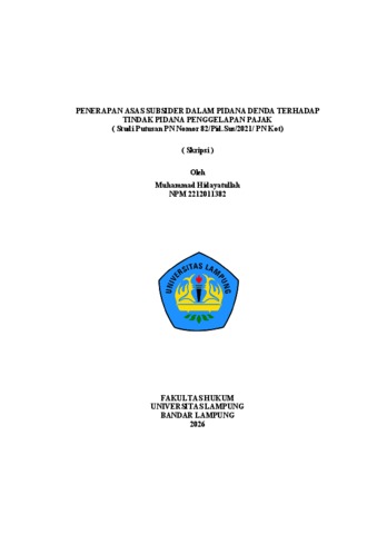 Muhammad , Hidayatullah (2026) PENERAPAN ASAS SUBSIDER DALAM PIDANA DENDA TERHADAP TINDAK PIDANA PENGGELAPAN PAJAK ( Studi Putusan PN Nomor 82/Pid.Sus/2021/ PN Kot). FAKULTAS HUKUM , UNIVERSITAS LAMPUNG.