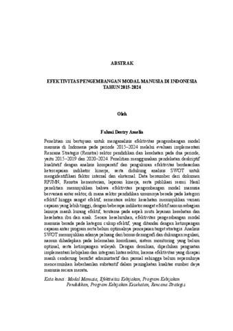 EFEKTIVITAS PENGEMBANGAN MODAL MANUSIA DI INDONESIA TAHUN 2015-2024
