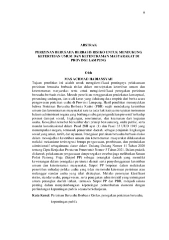 Mas Achmad , Hadiansyah (2026) PERIZINAN BERUSAHA BERBASIS RISIKO UNTUK MENDUKUNG KETERTIBAN UMUM DAN KETENTRAMAN MASYARAKAT DI PROVINSI LAMPUNG. Masters thesis, UNIVERSITAS LAMPUNG.