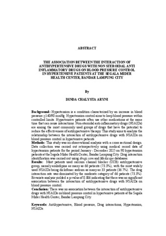 DINDA, CHALYSTA ARYNI (2026) HUBUNGAN INTERAKSI OBAT ANTIHIPERTENSI DENGAN OBAT ANTI INFLAMASI NON STEROID TERHADAP KONTROL TEKANAN DARAH PADA PASIEN HIPERTENSI DI PUSKESMAS SEGALA MIDER KOTA BANDAR LAMPUNG. FAKULTAS KEDOKTERAN, UNIVERSITAS LAMPUNG.