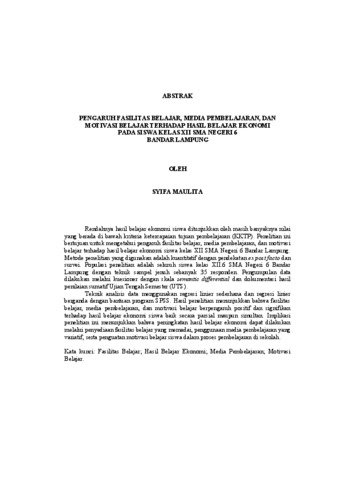 SYIFA , MAULITA (2026) PENGARUH FASILITAS BELAJAR, MEDIA PEMBELAJARAN, DAN MOTIVASI BELAJAR TERHADAP HASIL BELAJAR EKONOMI PADA SISWA KELAS XII SMA NEGERI 6 BANDAR LAMPUNG. FAKULTAS KEGURUAN DAN ILMU PENDIDIKAN, UNIVERSITAS LAMPUNG.