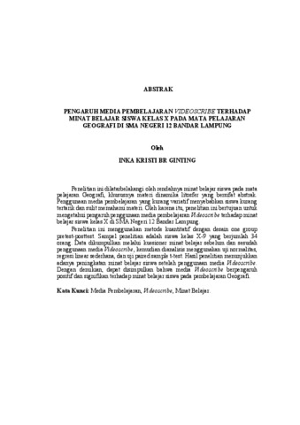 INKA , KRISTI BR GINTING (2026) PENGARUH MEDIA PEMBELAJARAN VIDEOSCRIBE TERHADAP MINAT BELAJAR SISWA KELAS X PADA MATA PELAJARAN GEOGRAFI DI SMA NEGERI 12 BANDAR LAMPUNG. FAKULTAS KEGURUAN DAN ILMU PENDIDIKAN , UNIVERSITAS LAMPUNG.