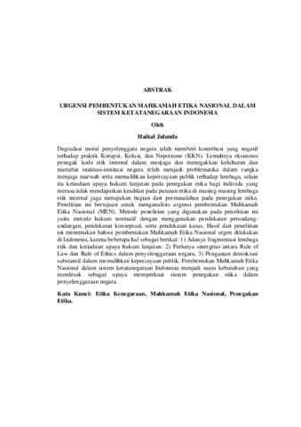 HAIKAL, JULANDA (2026) URGENSI PEMBENTUKAN MAHKAMAH ETIKA NASIONAL DALAM SISTEM KETATANEGARAAN INDONESIA. FAKULTAS HUKUM, UNIVERSITAS LAMPUNG.