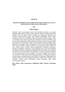 Degradasi moral penyelenggara negara telah memberi kontribusi yang negatif terhadap praktik Korupsi, Kolusi, dan Nepotisme (KKN). Lemahnya eksistensi penegak kode etik internal dalam menjaga dan menegakkan keluhuran dan martabat institusi-institusi negara telah menjadi problematika dalam rangka menjaga marwah serta memulihkan kepercayaan publik terhadap lembaga, selain itu ketiadaan upaya hukum lanjutan pada penegakan etika bagi individu yang merasa tidak mendapatkan keadilan pada putusan etika di masing-masing lembaga etik internal juga merupakan bagian dari permasalahan pada penegakan etika. Penelitian ini bertujuan untuk menganalisis urgensi pembentukan Mahkamah Etika Nasional (MEN). Metode penelitian yang digunakan pada penelitian ini yaitu metode hukum normatif dengan menggunakan pendekatan perundang-undangan, pendekatan konseptual, serta pendekatan kasus. Hasil dari penelitian ini menemukan bahwa pembentukan Mahkamah Etika Nasional urgen dilakukan di Indonesia, karena beberapa hal sebagai berikut: 1) Adanya fragmentasi lembaga etik dan ketiadaan upaya hukum lanjutan. 2) Perlunya sinergitas antara Rule of Law dan Rule of Ethics dalam penyelenggaraan negara, 3) Penguatan demokrasi substantif dalam memulihkan kepercayaan publik. Pembentukan Mahkamah Etika Nasional dalam sistem ketatanegaraan Indonesia menjadi suatu kebutuhan yang mendesak sebagai upaya memperkuat sistem penegakan etika dalam penyelenggaraan negara. Kata Kunci: Etika Kenegaraan, Mahkamah Etika Nasional, Penegakan Etika.