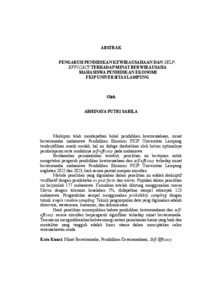 PENGARUH PENDIDIKAN KEWIRAUSAHAAN DAN SELF-EFFICACY TERHADAP MINAT BERWIRAUSAHA MAHASISWA PENDIDIKAN EKONOMI FKIP UNIVERSITAS LAMPUNG