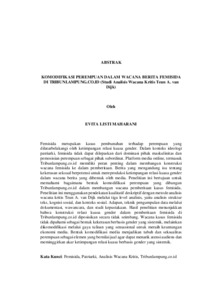 Femisida merupakan kasus pembunuhan terhadap perempuan yang dilatarbelakangi oleh ketimpangan relasi kuasa gender. Dalam konteks ideologi patriarki, femisida tidak dapat dilepaskan dari dominasi pihak maskulinitas dan pemosisian perempuan sebagai pihak subordinat. Platform media online, termasuk Tribunlampung.co.id memiliki peran penting dalam membangun konstruksi wacana femisida ke dalam pemberitaan. Berita yang mengandung isu tentang kekerasan seksual berpotensi untuk mereproduksi ketimpangan relasi kuasa gender dalam wacana berita yang dibentuk oleh media. Penelitian ini bertujuan untuk memahami bagaimana bentuk komodifikasi perempuan yang dibangun Tribunlampung.co.id dalam membangun wacana pemberitaan kasus femisida. Penelitian ini menggunakan pendekatan kualitatif deskriptif dengan metode analisis wacana kritis Teun A. van Dijk melalui tiga level analisis, yaitu analisis struktur teks, kognisi sosial, dan konteks sosial. Adapun, teknik pengumpulan data melalui dokumentasi, wawancara, dan studi kepustakaan. Hasil penelitian menunjukkan bahwa konstruksi relasi kuasa gender dalam pemberitaan femisida di Tribunlampung.co.id diposisikan secara tidak seimbang. Wacana kasus femisida tidak dipahami sebagai bentuk kekerasan berbasis gender yang sistemik, melainkan dikomodifikasi melalui gaya tulisan yang sensasional untuk meraih keuntungan ekonomi media. Bentuk komodifikasi media menjadikan tubuh dan seksualitas perempuan sebagai elemen yang bernilai jual agar dapat menarik atensi audiens dan meminggirkan akar ketimpangan relasi kuasa berbasis gender yang sistemik. Kata Kunci: Femisida, Patriarki, Analisis Wacana Kritis, Tribunlampung.co.id