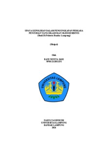 Peningkatan kasus pencurian yang dilakukan oleh residivis di wilayah hukum Polresta Bandar Lampung menimbulkan keresahan dan rasa tidak aman bagi masyarakat. Meskipun berbagai langkah telah dilakukan oleh aparat penegak hukum untuk menindak para pelaku, kenyataannya tindak kejahatan serupa terus berulang dengan modus yang semakin beragam. Kondisi ini menunjukkan bahwa efek jera yang diharapkan dari sistem pemidanaan belum berjalan optimal dan upaya pencegahan oleh pihak kepolisian masih menghadapi berbagai hambatan, baik dari aspek hukum, sumber daya, maupun kesadaran masyarakat. Oleh sebab itu, diperlukan penelitian untuk mengetahui sejauh mana peran dan langkah aparat kepolisian dalam menangani kasus tersebut. Permasalahan dalam penelitian ini adalah: bagaimanakah upaya Kepolisian Resor Kota Bandar Lampung dalam pengungkap perkara pencurian yang dilakukan oleh residivis, dan apakah faktor penghambat dalam proses pengungkapan perkara pencurian yang dilakukan oleh residivis. Penelitian ini menggunakan metode pendekatan yuridis normatif dan yuridis empiris, dengan data primer yang diperoleh melalui wawancara terhadap aparat kepolisian Polresta Bandar Lampung dan akademisi hukum pidana, serta data sekunder yang berasal dari studi kepustakaan, peraturan perundang-undangan, dan literatur hukum terkait. Analisis dilakukan secara kualitatif dengan penarikan simpulan secara deduktif. Berdasarkan hasil penelitian menunjukkan bahwa, upaya kepolisian dalam mengungkap perkara pencurian yang dilakukan oleh residivis dilakukan melalui dua tahapan, yaitu in abstracto dan in concreto. Pada tahap in abstracto, kepolisian berpedoman pada ketentuan hukum yang berlaku seperti Kitab Undang-Undang Hukum Pidana (KUHP), Kitab Undang-Undang Hukum Acara Pidana (KUHAP), serta Undang-Undang Nomor 2 Tahun 2002 tentang Kepolisian Negara Republik Indonesia sebagai dasar pelaksanaan tugas penyelidikan dan penyidikan. SementaraRani Novita Sari itu, pada tahap in concreto, upaya dilakukan secara langsung dilapangan melalui kegiatan penyelidikan, penyidikan, penangkapan, serta pengumpulan alat bukti untuk mengungkap tindak pidana yang dilakukan oleh residivis. Efektivitas penegakan hukum dalam perkara ini dipengaruhi oleh lima faktor utama, yaitu faktor hukum itu sendiri, faktor penegak hukum, faktor sarana atau prasarana, faktor masyarakat, dan faktor kebudayaan. Dari kelima faktor tersebut, faktor kebudayaan hukum memiliki pengaruh dominan karena rendahnya kesadaran hukum masyarakat serta minimnya partisipasi dan kepercayaan masyarakat dalam mendukung proses pengungkapan perkara. Saran dari penelitian ini adalah agar Kepolisian memperkuat pendekatan berbasis budaya hukum masyarakat melalui peningkatan profesionalitas aparat dan kemitraan dengan warga. Masyarakat juga diharapkan berperan aktif dalam menumbuhkan kesadaran hukum, melaporkan tindak kejahatan, serta mendukung proses penegakan hukum yang berkeadilan. Sinergi antara aparat penegak hukum dan masyarakat akan menjadi kunci dalam menekan angka residivisme serta mewujudkan sistem hukum yang efektif dan manusiawi. Kata Kunci : Upaya Kepolisian, Pencurian, Residivis