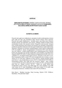 Penyakit kaki gajah atau elephantiasis merupakan kondisi pembengkakan ekstrem pada salah satu kaki yang disebabkan faktor internal maupun faktor eskternal. Penyakit kaki gajah (elephantiasis) memiliki gejala yang mirip antara filariasis limfatik (parasit) dan limfedema (non-parasit), sehingga terdapat kesulitan dalam membedakan kondisi fisik penyakit tersebut. Diagnosis kedua penyakit sebagian besar masih bergantung pada metode konvensional dan penelitian menggunakan pendekatan algoritma untuk penyakit kaki gajah (elephantiasis) masih sangat jarang dilakukan. Penelitian ini bertujuan mengembangkan model hybrid menggunakan CNN dan XGBoost, dengan menggabungkan kemampuan CNN untuk ekstraksi fitur dan XGBoost sebagai pengklasifikasi guna mengoptimalkan hasil. Metode hybrid yang digunakan juga mampu memberikan waktu pelatihan yang lebih efisien daripada model CNN murni. Evaluasi dilakukan menggunakan metode k-fold cross validation (k = 10) dengan metrik seperti accuracy, precision, recall, dan f1-score. Hasil menunjukkan bahwa model CNN murni memperoleh mean training accuracy sebesar 87.11% dan mean validation accuracy 89.83%, dengan performa terbaik pada fold ke-5 yang menghasilkan accuracy 94.87%. Model hybrid CNN-XGBoost menunjukkan kinerja yang lebih baik dan konsisten, dengan mean training accuracy 93.07% dan mean validation accuracy sebesar 91.83%, serta hasil terbaik pada fold ke-1 dengan accuracy 96.15%. Selain itu, model hybrid juga menghasilkan metrik evaluasi yang lebih tinggi dan waktu pelatihan yang lebih cepat sekitar 44-53 detik dibandingkan CNN murni sekitar 9-24 menit yang menunjukkan efektivitas kombinasi dari model CNN dan XGBoost.