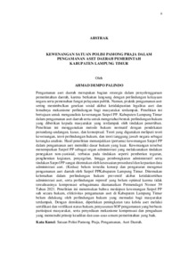 AHMAD DEMPO , PALINDO (2026) KEWENANGAN SATUAN POLISI PAMONG PRAJA DALAM PENGAMANAN ASET DAERAH PEMERINTAH KABUPATEN LAMPUNG TIMUR. Masters thesis, UNIVERSITAS LAMPUNG.