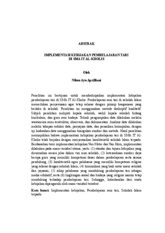 NIKEN AYU , APRILLIANI (2026) IMPLEMENTASI KEBIJAKAN PEMBELAJARAN TARI DI SMA IT AL-KHOLIS. FAKULTAS KEGURUAN DAN ILMU PENDIDIKAN , UNIVERSITAS LAMPUNG.